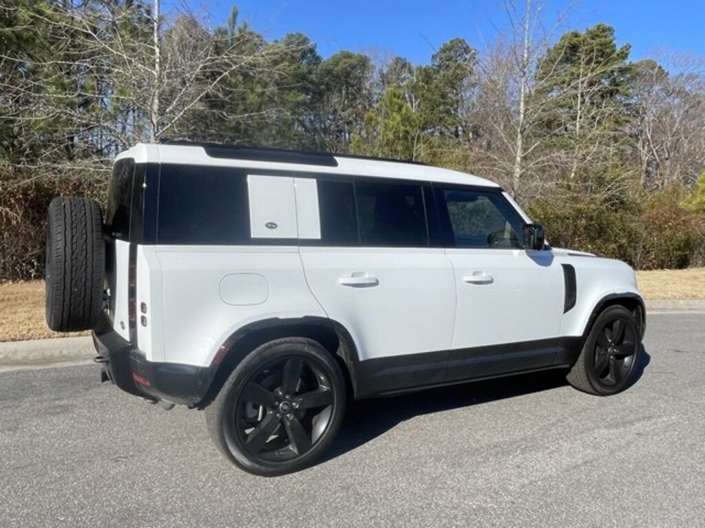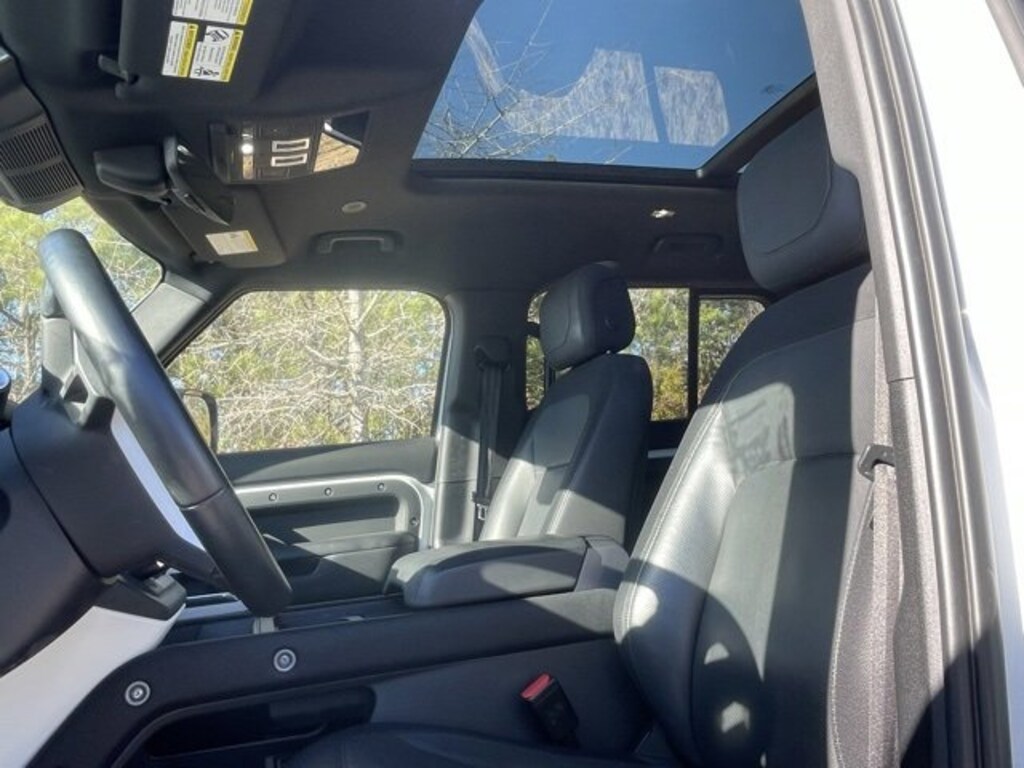 Clean CARFAX. Certified. Fuji White 2023 LAND ROVER Defender 110 X-Dynamic SE 4WD 8-Speed Automatic 3.0L I6 LOCAL TRADE IN, BACK UP CAMERA, LEATHER, HEATED SEATS, COOLED SEATS, PANORAMIC SUNROOF, 4-WHEEL DRIVE, SMART KEY W PUSH BUTTON START, DYNAMIC RADAR CRUISE CONTROL, LANE DEPARTURE ALERT W STEERING ASSIST, BLIND SPOT MONITOR W REAR CROSS TRAFFIC ALERT, APPLE CARPLAY & ANDROID AUTO, FULL TIME 4-WHEEL-DRIVE, MEMORY SEAT, HOMELINK GARAGE DOOR TRANSMITTER, 360 PARKING AID FRONT & REAR PARKING SENSORS, AERIAL VIEW CAMERA SYSTEM, 3D SURROUND CAMERA, FRONT, LEFT SIDE, RIGHT SIDE - CAMERA, TOWING PACK W ALL TERRAIN PROGRESS CONTROL, TOW HITCH RECEIVER, ADVANCED TOW ASSIST, FAMILY COMFORT PACK W AIR QUALITY SENSOR, MANUAL HEATED 3RD ROW SEAT, 3 ZONE CLIMATE CONTROL, COLD CLIMATE PACK W HEATED STEERING WHEEL, COMFORT & CONVENIENCE PACKAGE W PREMIUM CABIN LIGHTING, REFRIGERATED CENTER CONSOLD, NO ACCIDENTS, MUST SEE!, 12-Way Heated & Cooled Electric Memory Seats, 3-Zone Climate Control, ABS brakes, Air Quality Sensor, Apple CarPlay & Android Auto, Brake assist, Compass, Family Comfort Pack, Four wheel independent suspension, Front dual zone A/C, Garage door transmitter: HomeLink, Grained Leather Seat Trim, Illuminated entry, Leather Shift Knob, Leather steering wheel, Manual Heated 3rd Row Seats, Memory seat, Navigation system: Connected Navigation PIVI Pro, Power moonroof, Radio: 700W 15 Speaker Meridian Surround Sound Sys, Steering wheel mounted audio controls, Traction control.