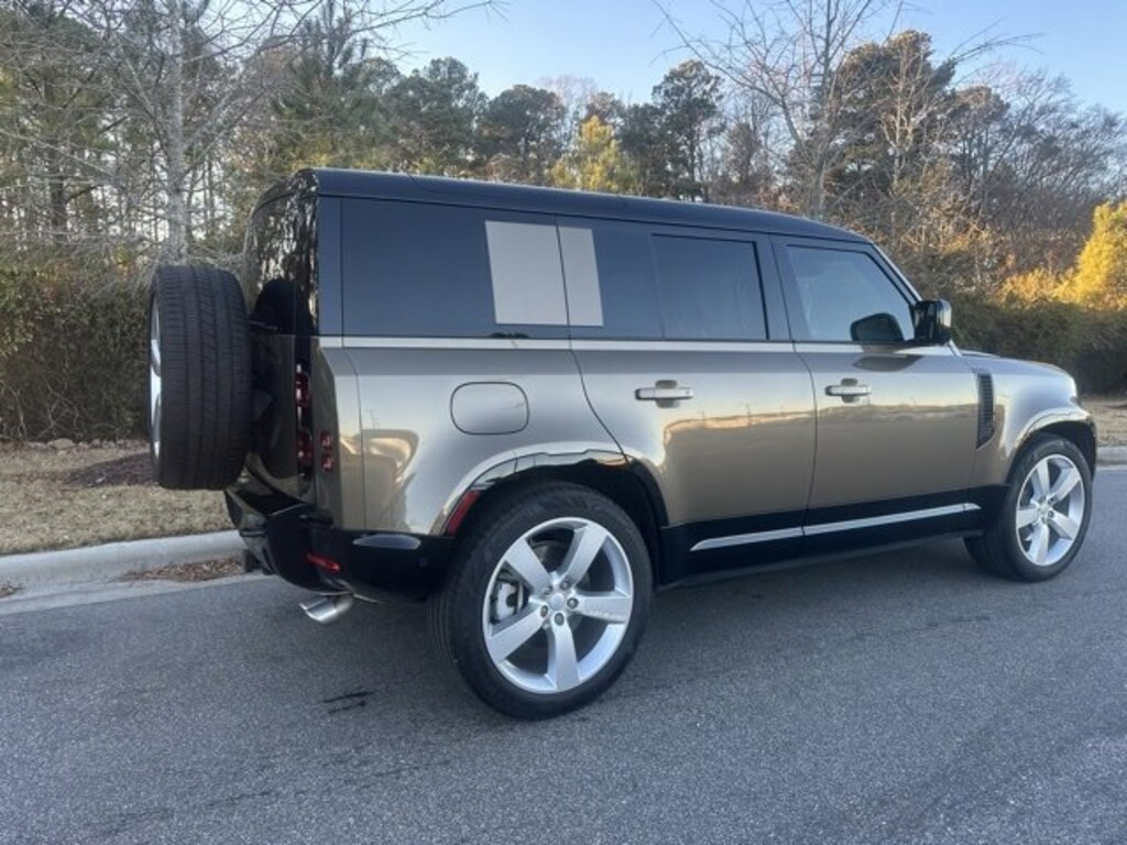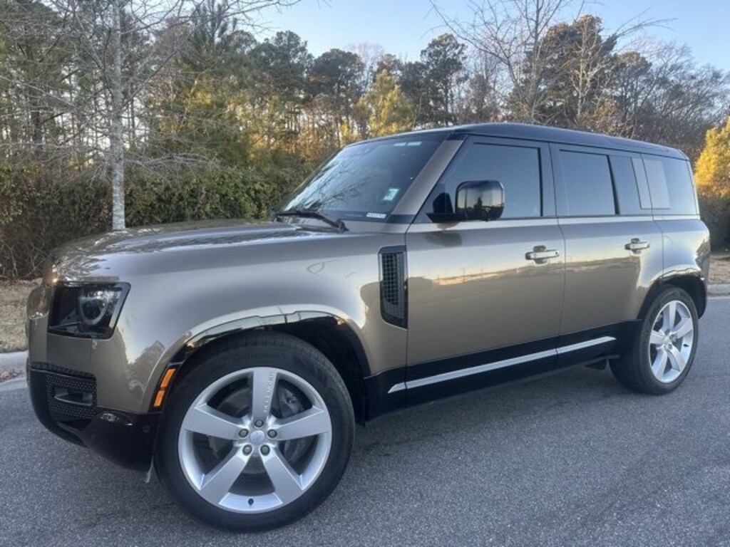 Clean CARFAX. Certified. Gondwana Stone Metallic 2025 LAND ROVER Defender 110 X-Dynamic SE AWD 8-Speed Automatic V8 Supercharged Courtesy Vehicle, OWNED BY DEALER, 14-Way Heated and Cooled Electric Memory Front Seats, Extended Leather Upgrade, Leather Gearshift, Leather Wrapped Steering Wheel with PU Driver Airbag, Premium Upgrade Interior Pack, Wheels: 22" Gloss Sparkle Silver Style 5098.